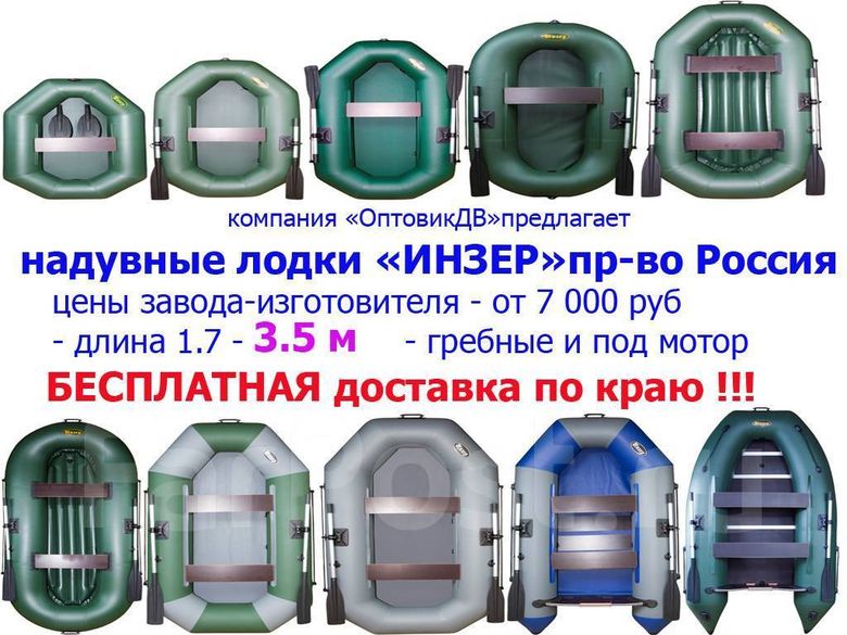Лодки "Инзер" лёгкие, прочные и компактные. На выбор покупателей представлен большой выбор моделей и расцветок: