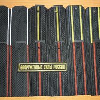 Также имеются в наличии вышитые нарукавные знаки, шевроны, знаки различий, специальные знаки подразделений.