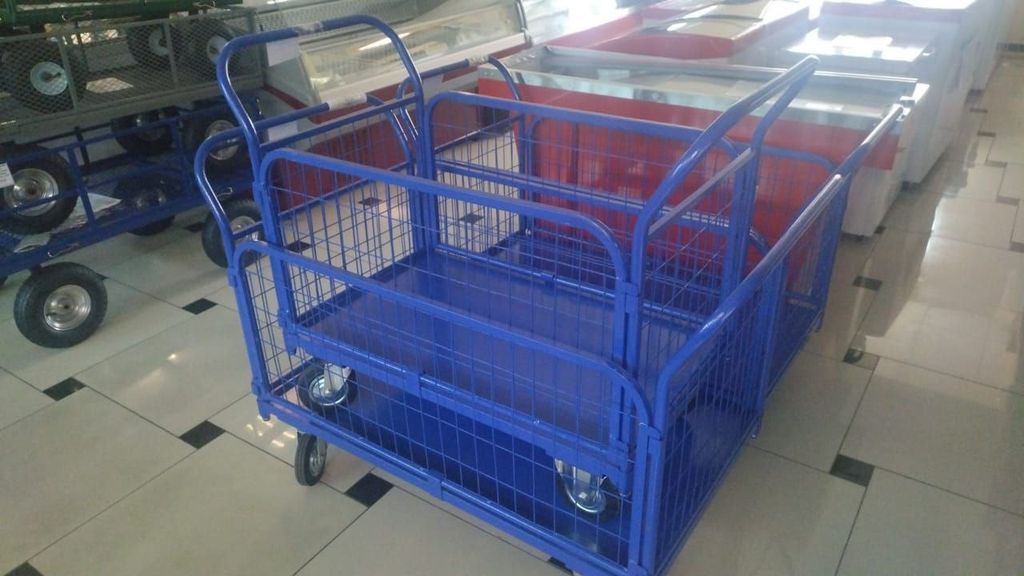 Платформенная тележка с сетчатыми бортами грузоподъемностью 300-600 кг подойдет для перевозки грузов и крупногабаритных товаров по территории склада и произвдства. Решетчатые высокие борта можно снять, и использовать изделие в качестве подвижной платформы для транспортировки грузов нестандартных форм и размеров.