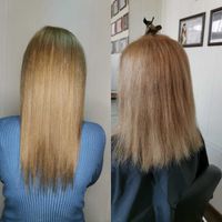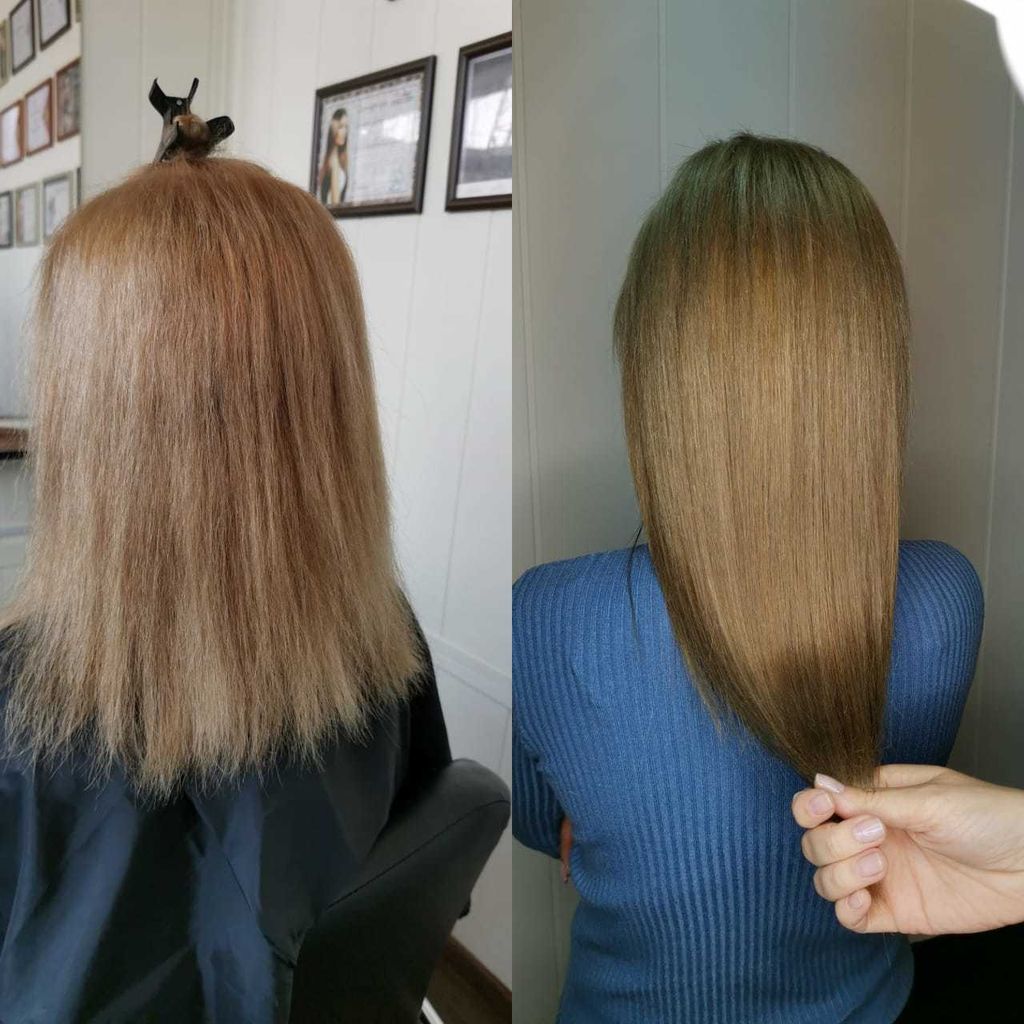 Салон красоты "Сливки" делает термокератин и на наращенные волосы.