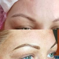 Говоря об окрашивании, невозможно не сказать о биотатуаже. Это вариант подойдёт тем, кто любит использовать натуральную косметику и хочет со временем замеить увеличение густоты бровей. Данная процедура выполняется хной - тщательно прокрашиваются не только волоски, но и кожа под ними, что позволяет мастеру придать бровям четкую форму. Результат держится 3-4 недели (чуть меньше, если кожа склонна к жирности) и позволяет Вам не тратить время на брови во время утреннего макияжа. Сейчас в салоне действует акция - данная процедура обойдётся Вам всего в 600 рублей! Стойкая краска обойдётся в 700 рублей, но и продержится больше месяца.