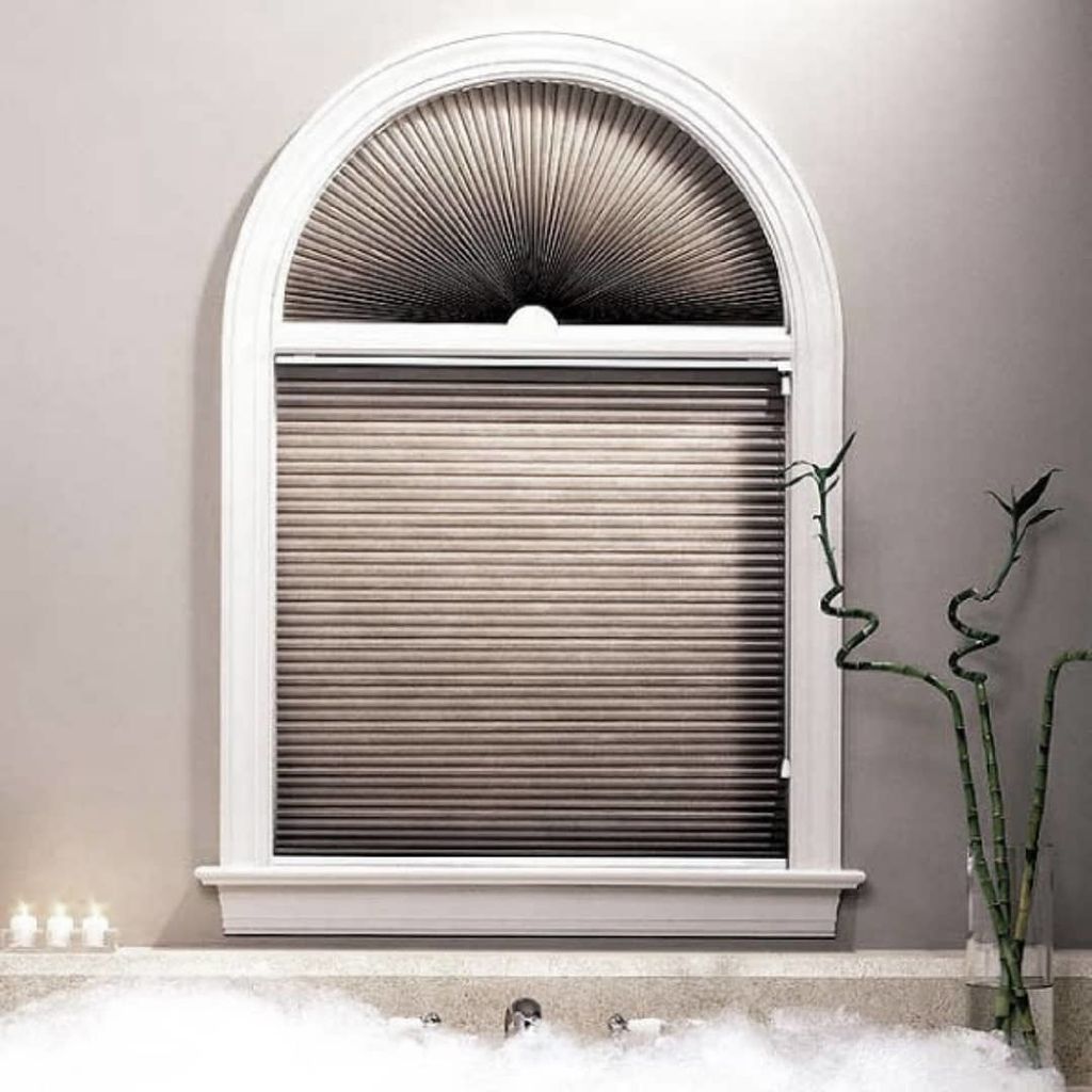 Такие шторы станут прекрасным выбором для оформления нестандартных окон, например круглых или арочных, так как их можно открывать как сверху, так и снизу. В настоящее время шторы плиссе являются единственной конструкцией, которая дает такие возможности. При необходимости вы сможете одним движением собрать шторы в плотные изящные складки вверху или внизу окна, сделав их практически незаметными.