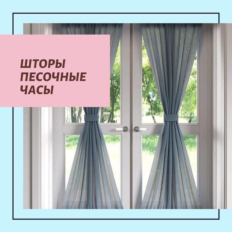 Шторы песочные часы - это отрез ткани, который закреплен в верхней и нижней части рамы, а по центру стянут красивой лентой.