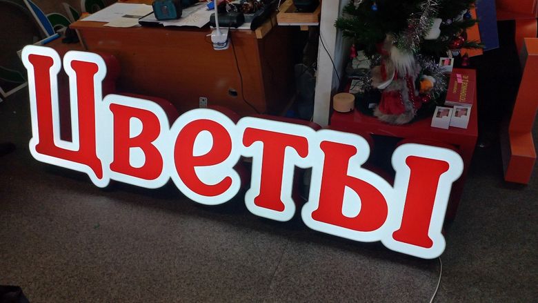 Световые буквы на металлическом каркасе — элемент наружной рекламы, прекрасно подходящий для создания вывески для фасада и внутренних помещений здания.