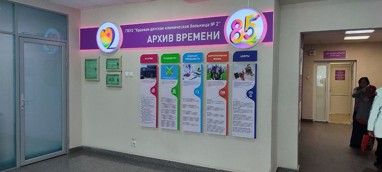 Вот такой стенд специалисты мастерской рекламы и дизайна "Аксиома" сделали к 85-летию ГБУЗ "КДКБ №2" во Владивостоке. На всю продукцию действует гарантия от 12 до 36 месяцев.