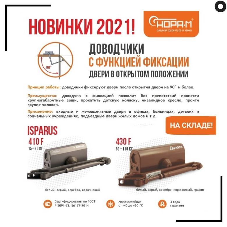 Компания "Торговоый Дом Планета Безопасности" объявляет о поступлении на склад новых моделей доводчиков ISPARUS.