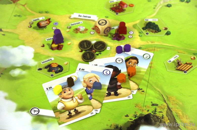 Выставляя рабочих на разнообразные области игровых полей, игрок получает от них соответствующую прибыль. Да, ставить рабочих можно не только на свой и общий планшет, но и на планшеты других игроков, ведь деревенька-то общая! Периодически игроки будут открывать особые "сундучки" и использовать их содержимое. Новые карты, ресурсы, здания, даже новые правила будут вводиться в игру с каждым таким сундучком. Здания и правила выполнены в виде наклеек, таким образом, когда они появляются в игре, они остаются в ней и на следующие партии.