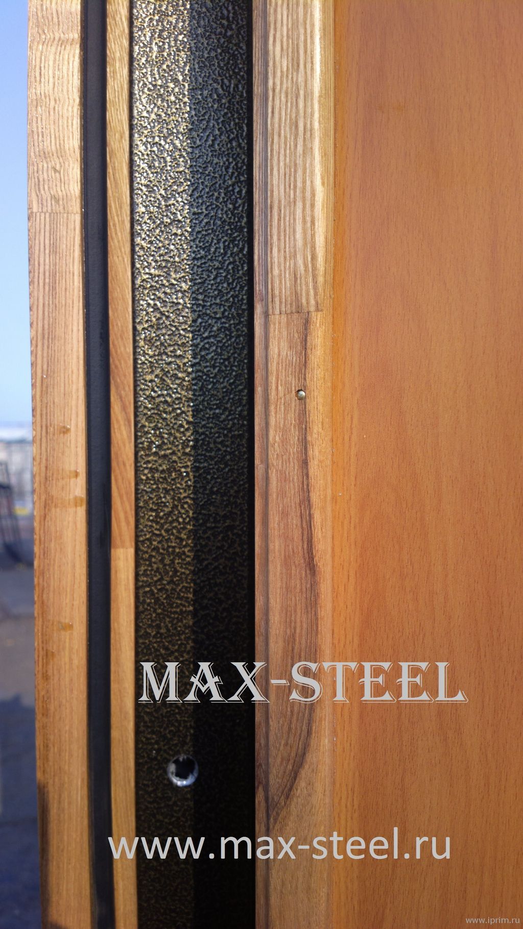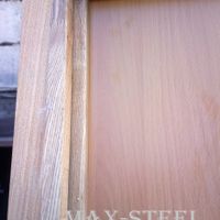Такие двери не будут обмерзать из-за разницы температур . Внутрь двери забивается базалит, мдф вкладывается в деревянную рамку, которая не дает поверхностям металлического каркаса и МДФ соприкасаться. Сверху крепеж закрывается деревянной рейкой по периметру двери. Рама забивается полеуретановой пеной и на неё накладывается деревянный каркас покрытый лаком.