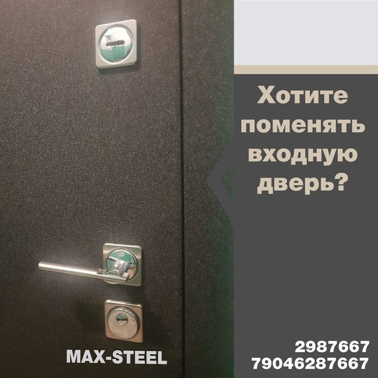 Чтобы заказать входную дверь в компании "Max-steel", оставьте ваш номер телефона в директе нашего Инстаграм-аккаунта @2987667_max_steel, напишите в в WhatsApp по номеру +7 904 628-76-67 или задайте вопрос, воспользовавшись специальной кнопкой под новостью. Можно задать интересующие вопросы нашему менеджеру по телефонам +7 423 298-76-67, +7 423 298-26-62.