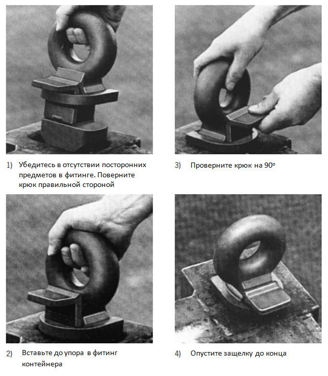 - Специальный фиксатор надежно фиксирует крюк в пазах контейнера