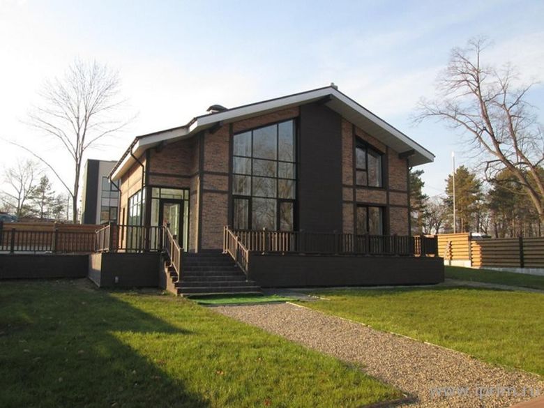 "Альпийский дом" - двухэтажный коттедж площадью 157,6 кв. метров, расположен на участке площадью 963 кв. метров (улица Первая поселка), и построен именно для того, чтобы потенциальные клиенты могли увидеть коттедж не только с внешней стороны, но и изнутри. И соответственно сравнить свои собственные представления о доме мечты с возможными проектными, дизайнерскими и технологическими решениями. В отделке Демо-дома принимали участие наши партнеры, информацию о которых можно получить, как в Демо-доме, так и на сайте компании.