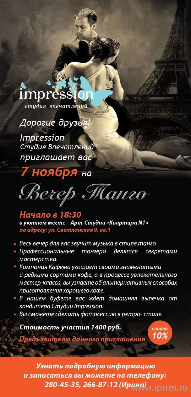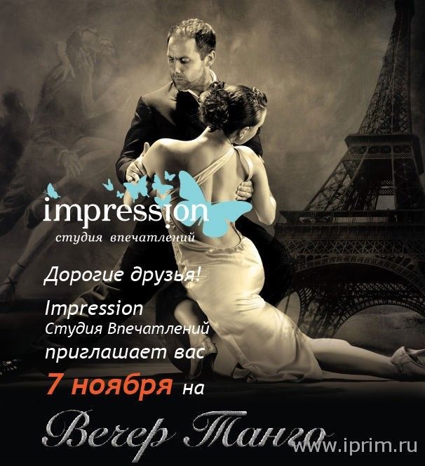 Студия впечатлений "Impression" приглашает Вас на вечер танго.