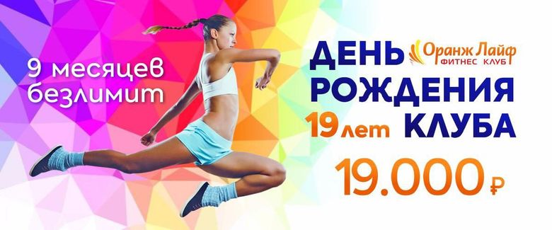 Фитнес-клубу "ОранжЛайф" исполняется 19 лет! И все это время вы, наши дорогие клиенты, были с нами на этом вдохновляющем, хоть иногда и тернистом, пути к здоровому образу жизни и красивой физической форме.