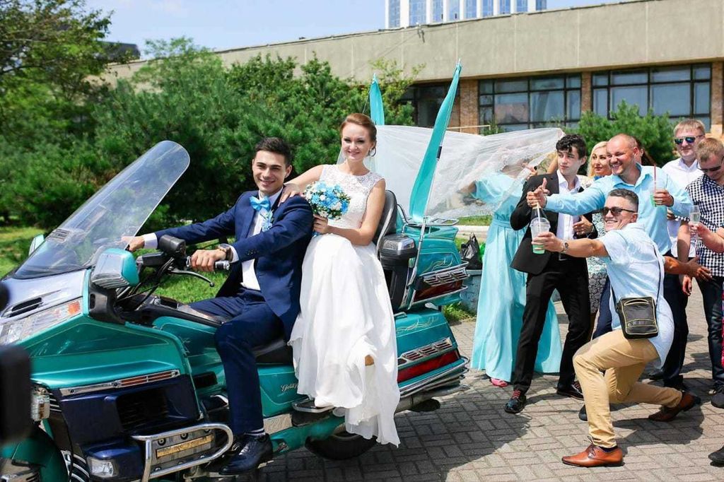 - Фотозона (прессвол, настоящий мотоцикл? Хонда "?Голд Винг" бирюзового цвета, мотошлем)