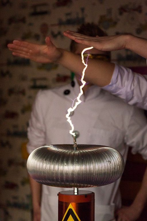 Шоу проводит 1 человек. При проведении шоу из катушки Тесла вырабатывается миллиамперный ток, который абсолютно безопасен для человека.