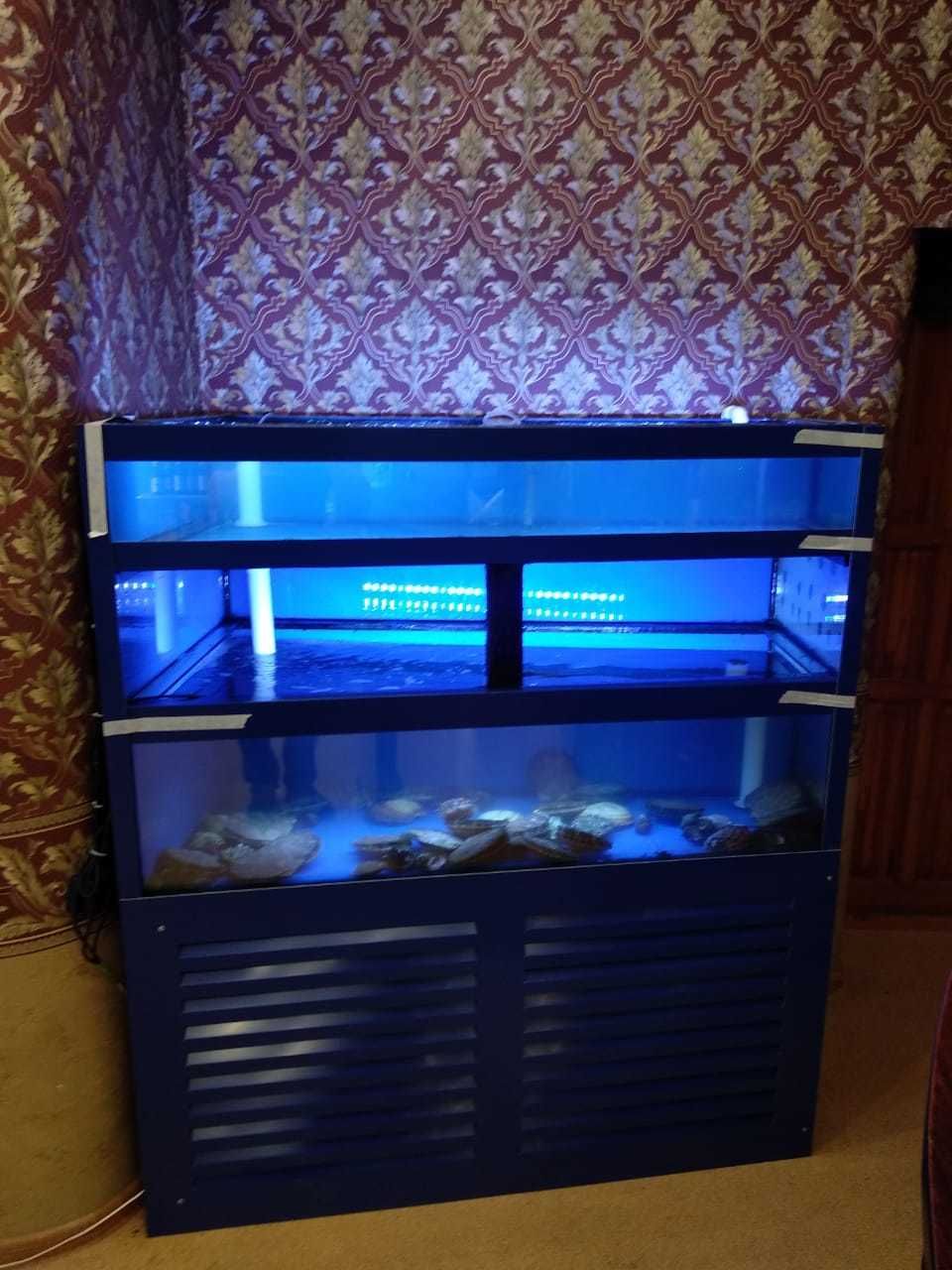 Собственное производство и сотрудничество с поставщиками высококачественного оборудования - залог контроля качества на всех этапах создания аквариума. Мы предлагаем надежные варианты размещения живых морепродуктов, можем изготовить аквариум необычной формы. Имеем большой опыт работы с морскими аквариумами.