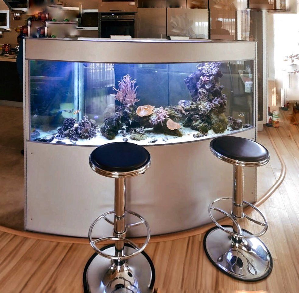 Современные материалы, обеспечивающие высокую прочность готового изделия, а также разнообразие декоративных элементов и продуманность систем, обеспечивающих оптимальные показатели водной среды для обитателей морских аквариумов, позволяет воплотить в жизнь любые дизайнерские задумки и сделать их не только невероятно красивыми, но и практичными.