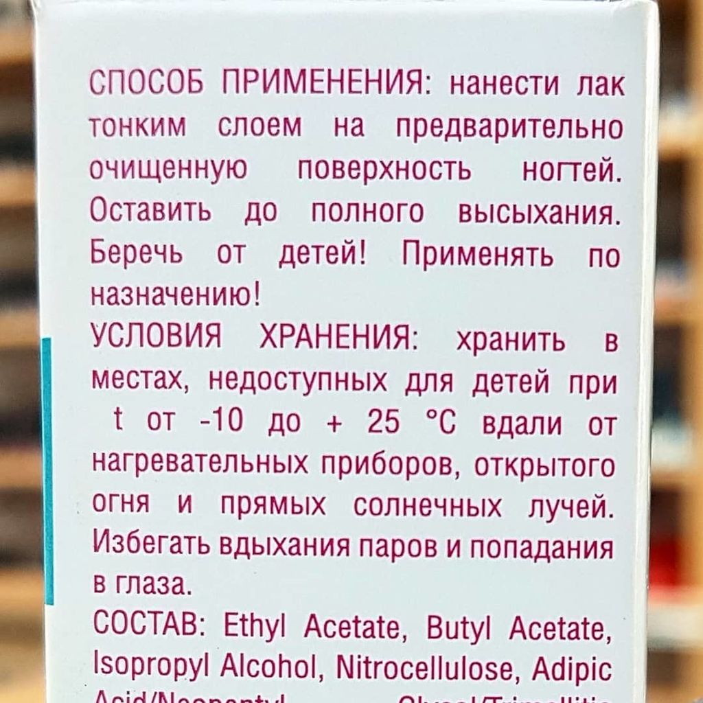 Лак хорошо фиксируется на ногтевой пластине, быстро сохнет и долго держится, создавая защитный барьер от заражения при посещении бани, бассейнов и пляжей.