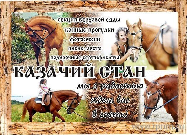Этно-парк "Казачий стан" приглашает всех желающих пообщаться с прекрасными и благородными животными - лошадьми. В нашем арсенале разнообразные прогулки, экскурсии, а также мы предлагаем антуражное оформление для фотосессий.