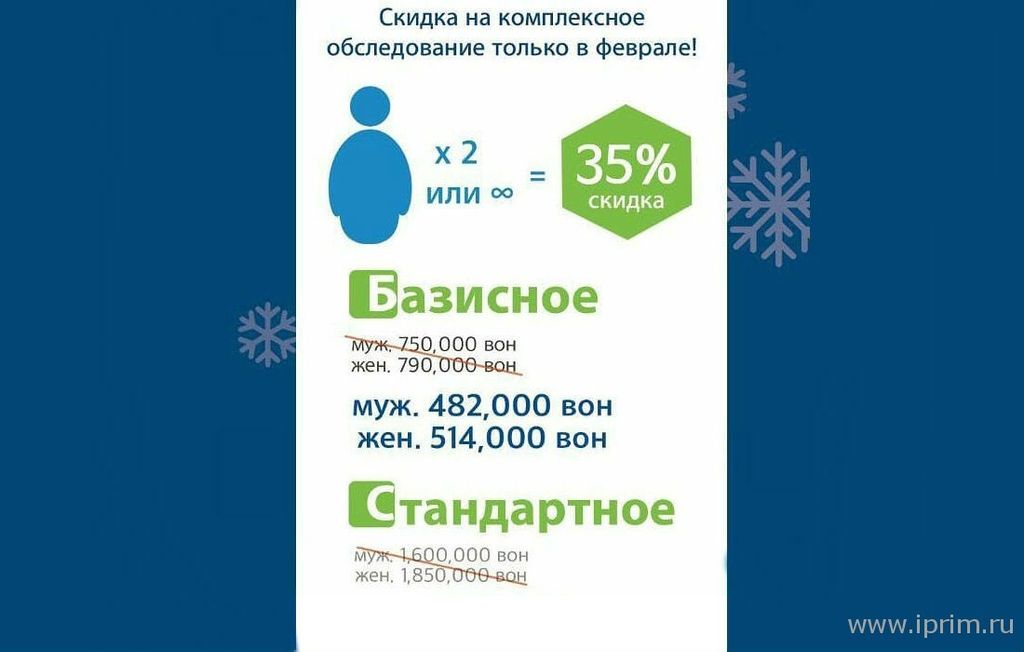 - Базовое обследование с учетом скидки для мужчин - 493 $ ,