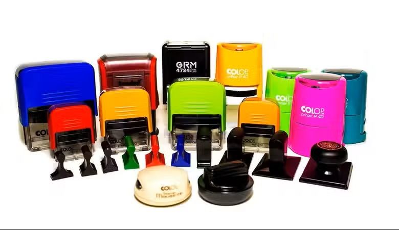 - ручные штампы разных размеров, для которых отдельно требуется штемпельная подушка с краской.