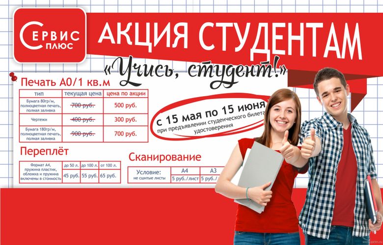 Предложение по акции действительно для студентов при предъявлении студенческого билета, удостоверения.