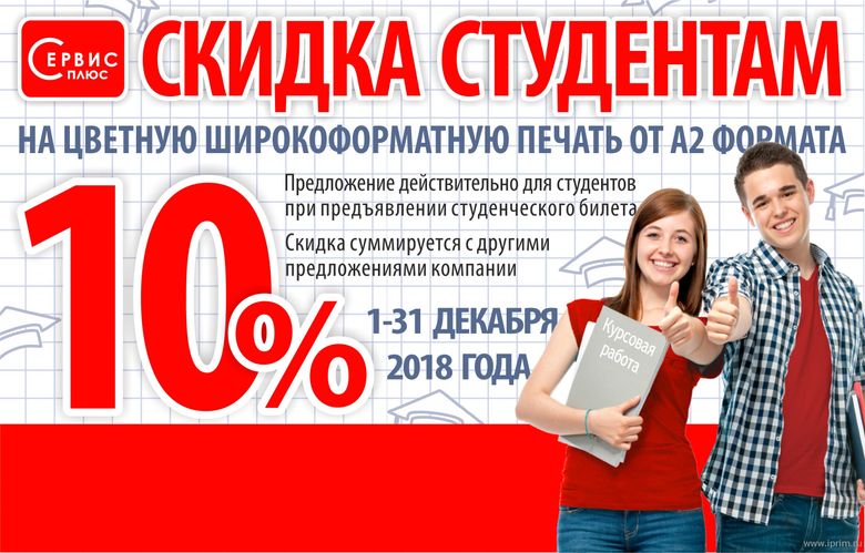 Предложение по акции действительно для студентов при предъявлении студенческого билета, удостоверения.