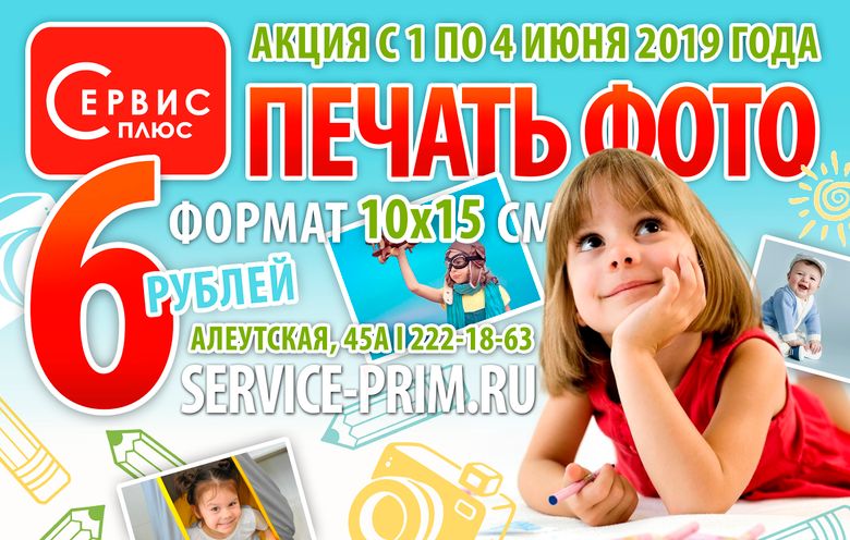 В честь дня защиты детей Сервис-плюс проводит акцию - Печать фото по 6 рублей.