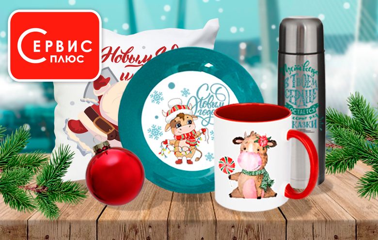 Компания "Сервис-Плюс" предлагает изготовление новогодних фотосувениров: календарей, футболок, свитшотов, кружек, термостаканов, магнитов, брелоков, чехлов для телефонов, фартуков, прихваток, пазлов, подушек, тарелок, термосов, часов, бутылок для спорта, толстовок.