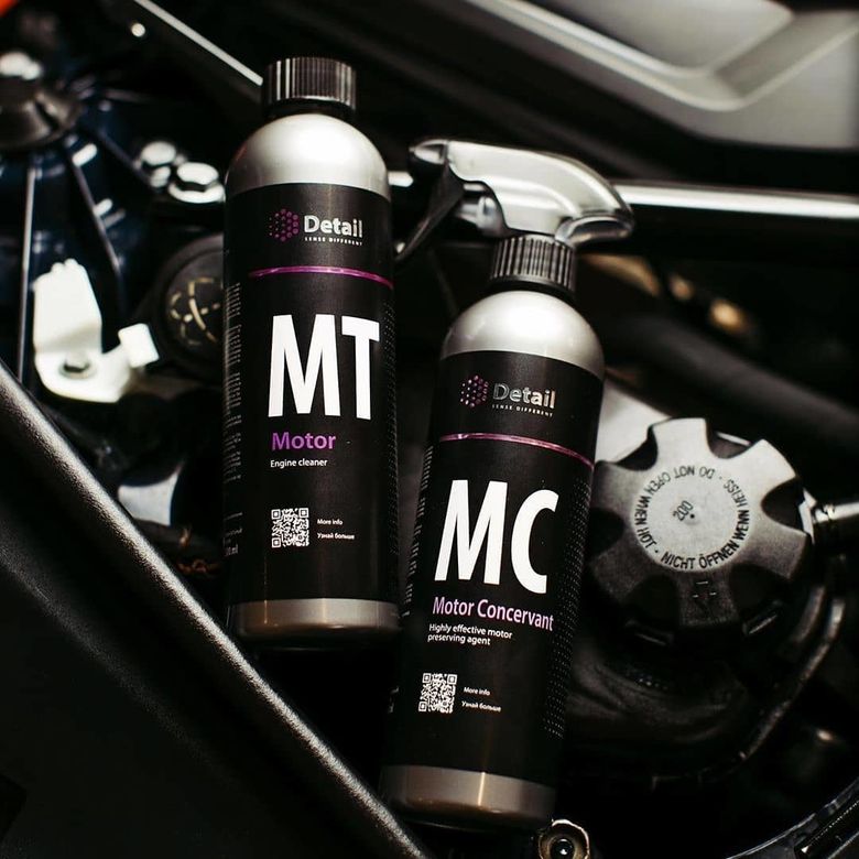 Motor Conservant (MC) - Консервирующее средство для обработки подкапотного пространства. Формируемая составом на поверхности стойкая эластичная пленка защищает от коррозии, перепадов температур и реагентов. Возвращает первоначальный вид и предохраняет от осаждения грязи, масел и облегчает последующую очистку.