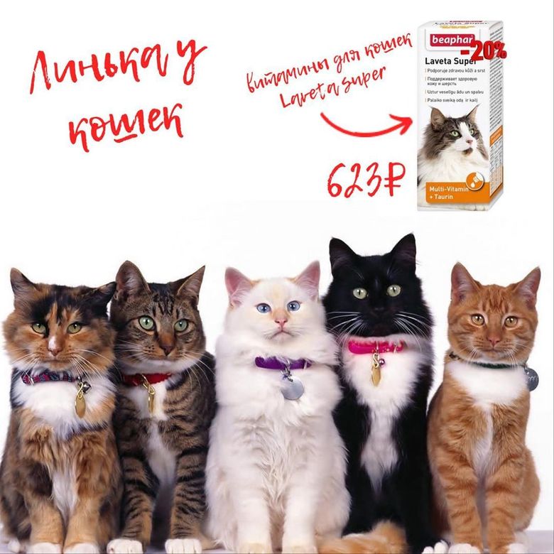 - "Квартирная" линька. Кошки, которые живут в квартире не ощущают смены климата и сезона, ситуация усугубляется во время отопительного сезона - сухой воздух сильно портит состояние шерсти. Проблему можно решить увлажнением воздуха, правильно подобранными витаминами и специальными средствами по уходу за шерсткой. У нас вы всегда можете приобрести Беафар - витаминный комплекс для кожи и шерсти (50 мл).