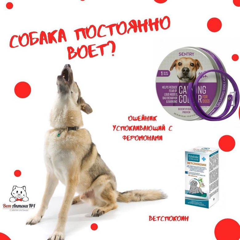 Ни в коем случае не используйте ошейники против лая, особенно те, которые бьют собаку током или струей воды. В трудной ситуации покажите собаку кинологу, он поможет разобраться в причинах воя и обязательно посетите ветеринара, чтобы удостовериться, что животное здорово. А если нет и всему виной психические расстройства, то у нас Вы можете подобрать успокоительные препараты или специальный успокаивающий ошейник Sentry на феромонах.