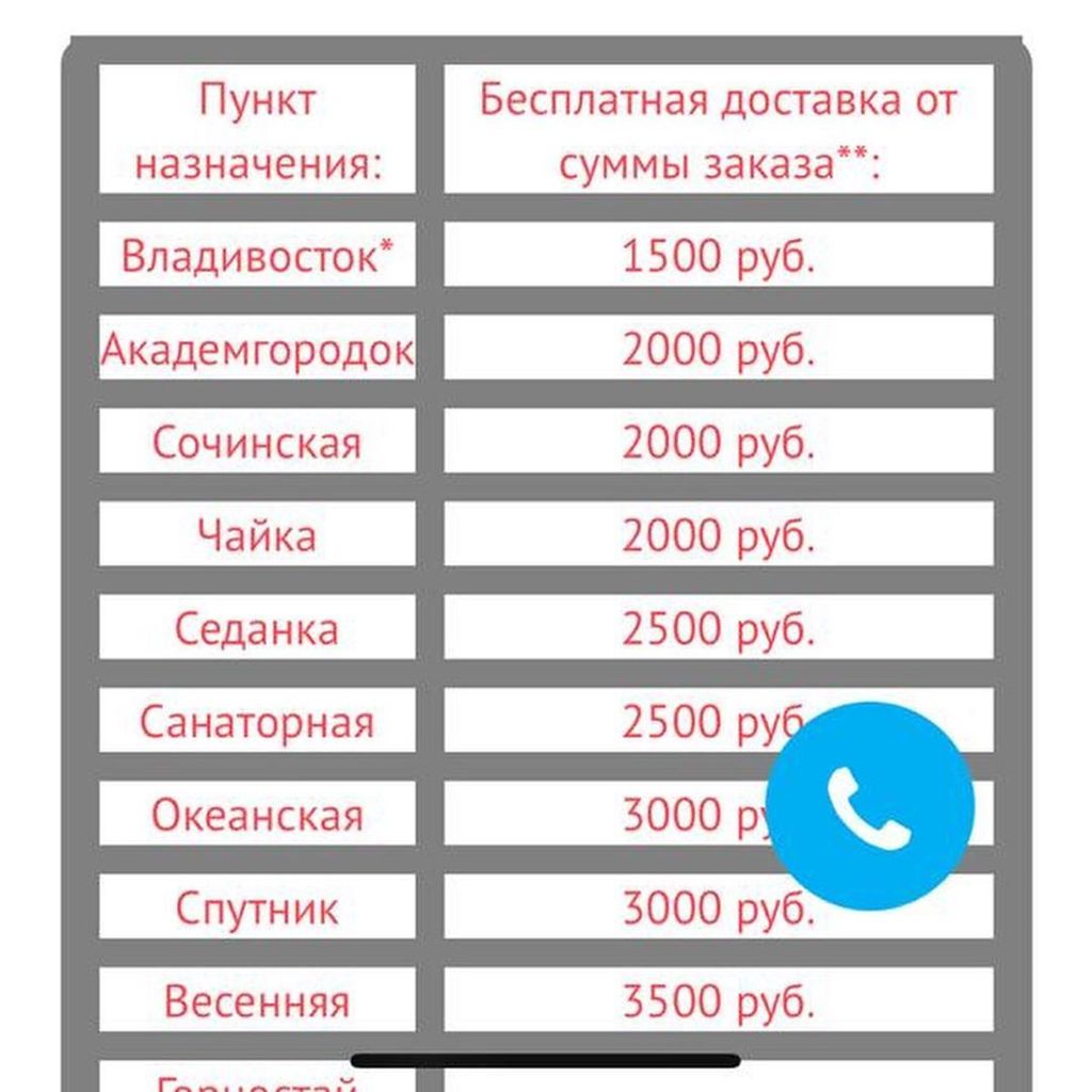 Сейчас у нас действуют новые тарифы на доставку. Теперь мы привозим покупки от 1500 рублей бесплатно в любую точку Владивостока. Хорошая новость: каждое 1, 10 и 20 число месяца на все категории товаров действует скидка 10%.