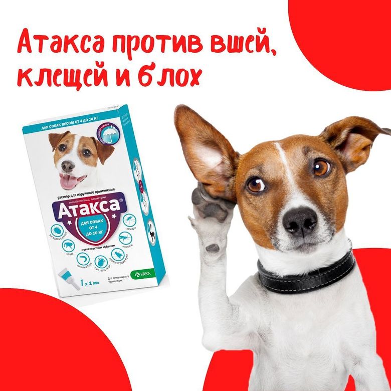"Атакса" - это эффективное средство против имагинальных, преимагинальных и личиночных фаз развития вшей, блох, власоедов, паразитирующих на собаках. Имидаклоприд и перметрин, входящие в состав препарата оказывают выраженное инсектицидное действие на насекомых.
