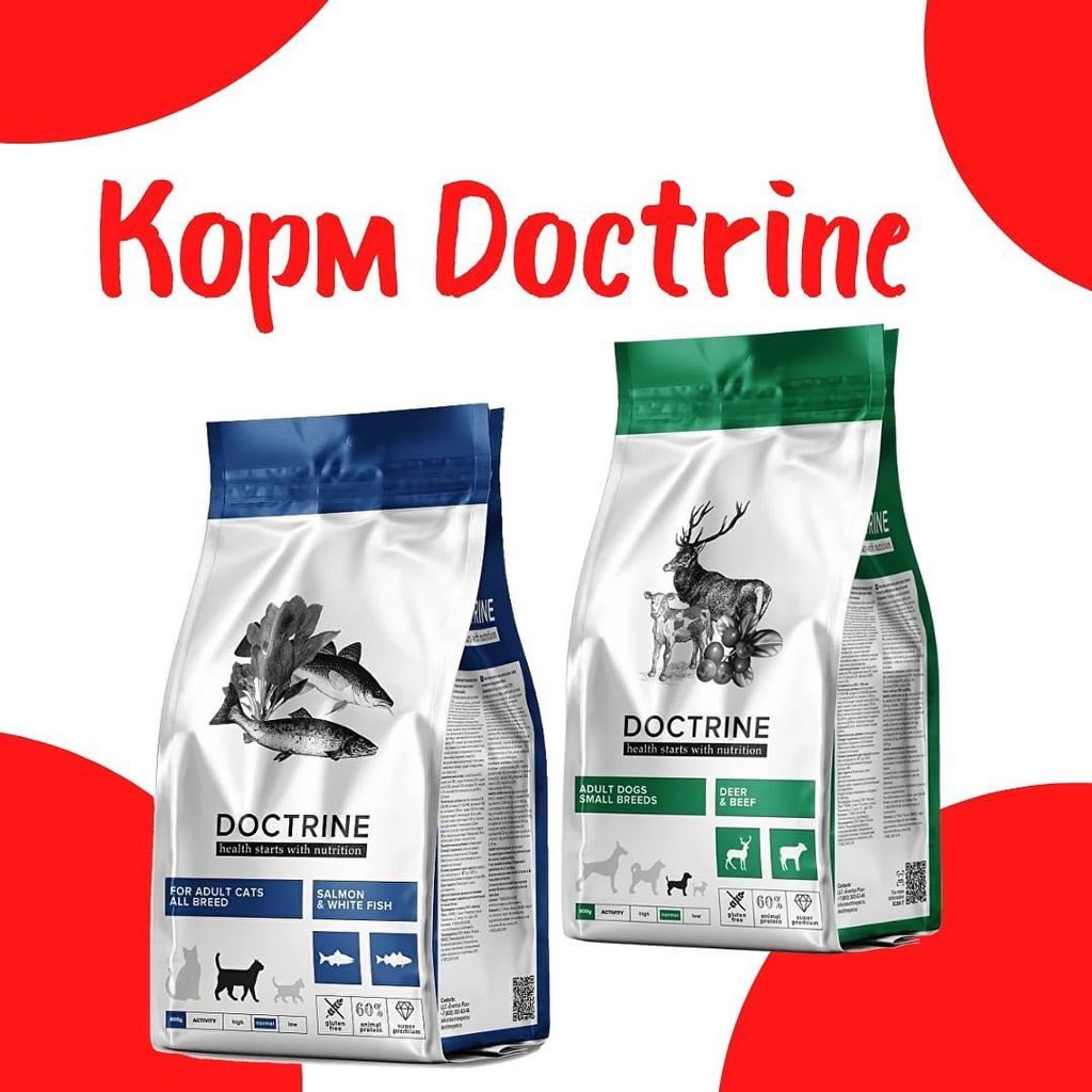 Корма Doctrine - это по-настоящему правильное питание для домашних хищников. Его составы разрабатывают ветеринарные диетологи с высшим образованием, кандидатской степенью и опытом практической работы в зоодиетологии - с Doctrine Вы можете быть уверены в прекрасном самочувствии и крепком иммунитете питомца. Сочетание мяса с овощами, полезными ягодами, травами обогащает состав корма важными для любого любимца витаминами и минералами.