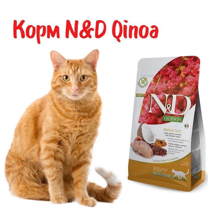 - N&D QUINOA SKIN&COAT. Специальная формула для чувствительного пищеварения и поддержания здоровья кожи и шерсти.