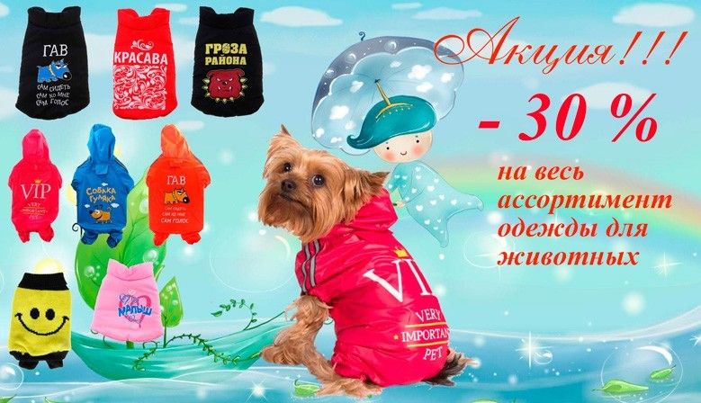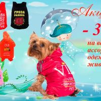 Магазин "КуКуСити" предлагает широкий ряд костюмов и одежды для собак с 30% скидками.