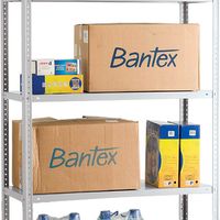 Эта система позволяет оптимально использовать высоту склада, а более высокие уровни могут быть доступны механически с помощью подъемных устройств для оператора. Соединение элементов - рам и балок - средне-грузового стеллажа производится на зацепах без использования болтов, и сборка производится без инструментов. Балки крепятся на рамах с помощью специальных фиксаторов. Межбалочные связи увеличивают несущую способность балок. Каждая модель комплектуется металлическими пятками, прикрепляемых к полу при помощи анкеров. В качестве полок используются металлические настилы, ДСП или фанера.
