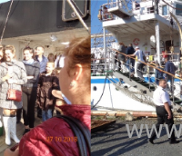 Сотрудников предприятия приветствуют на борту парусника.