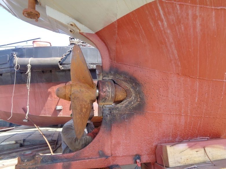 Завершён ремонт и монтаж винто-рулевого комплекса буксира БКЖ "Надёжный", судно спущено на воду, выполняется центровка валопровода и главного двигателя.