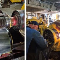 25 июня специалисты приступили к ремонту приводного электродвигателя и редуктора крыльчатого движителя правого борта плавкрана "Черноморец-24". Здесь же выполняются работы по проверке, ремонту и настройке схем аварийно–предупредительной сигнализации дизель-генераторов и крыльчатых движителей, схем управления движением и рулевых указателей.