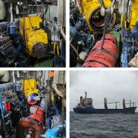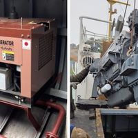 Фото 1: Установлен дизель-генератор. Фото 2: Погрузка главного двигателя.