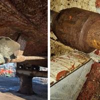 По заданию ФГБУ "МорСпасСлужба" производится разборка винто-рулевого комплекса бонопостановочного судна "Мизар" для уточнения характера повреждений в результате посадки на камни и определения объема и стоимости работ по восстановлению ВРК.