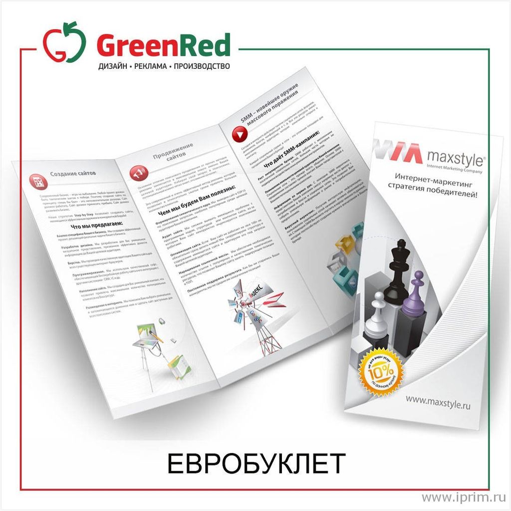 - Евробуклет 2 фальца, буклет 1 фальц (А5), буклет-гармошка, двухсторонняя полноцветная печать — 7,8 рублей штука.