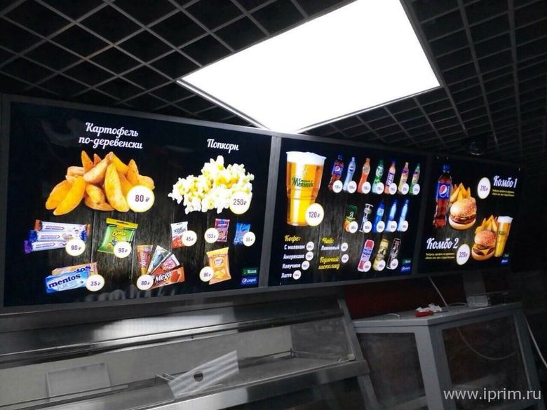 - В барах, ресторанах, кафе. Незаменимый компонент в создании интерьера таких заведений! Кроме информации световые панели могут содержать картины, эскизы и многое другое. Это поможет создать неповторимый антураж и атмосферу.
