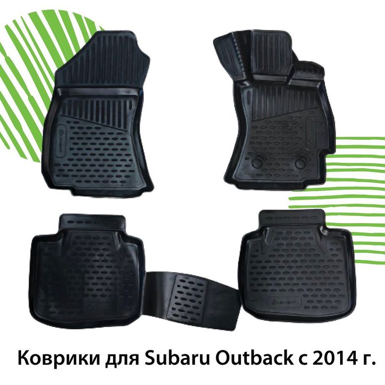 "Точка Авто" предлагает владельцам Subaru Outback с 2014 года выпуска комплект модельных полиуретановых ковриков российского бренда Element для данной модели.