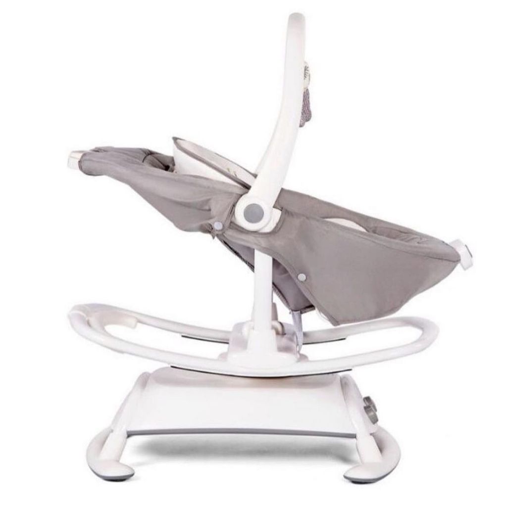 Встроенный музыкальный модуль и дуга с игрушками привлекут интерес ребенка, помогут расслабиться и успокоиться. Запустить качалку в движение возможно с помощью электронного типа управления. Возможны укачивающие движения вперед-назад и из стороны в сторону.