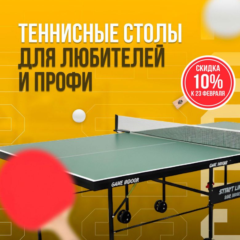 - Теннисные столы — домашние, профессиональные и антивандальные (акционные отмечены на странице).