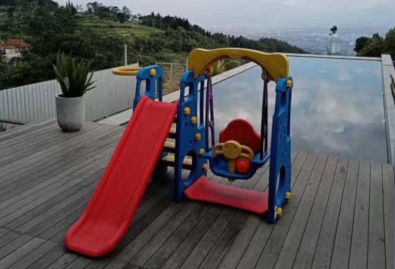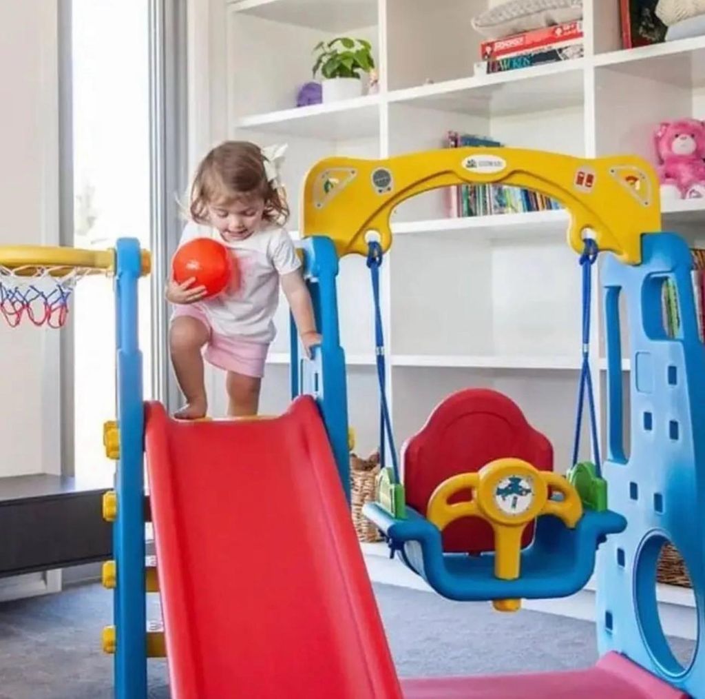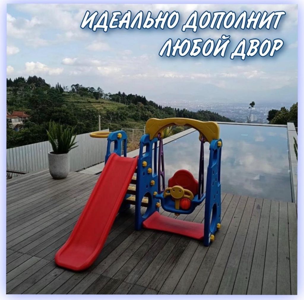 - В комплекте есть кресло-качели с защитным бампером и безопасная горка
