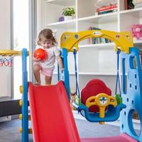 Эти игровые площадки подарят вашим малышам море радости и смеха! Не устите шанс порадовать своих крох! Классическая прямая горка оснащена высокими боковыми стенками-поручнями, а забраться на нее можно по широкими не скользящими ступеням. Положение ската регулируется по высоте и наклону, что очень удобно, учитывая рост ребенка. Допустимая нагрузка на изделие составляет 45 кг, рекомендуемая возрастная категория 1+. Комплекс дополнен баскетбольным кольцом.